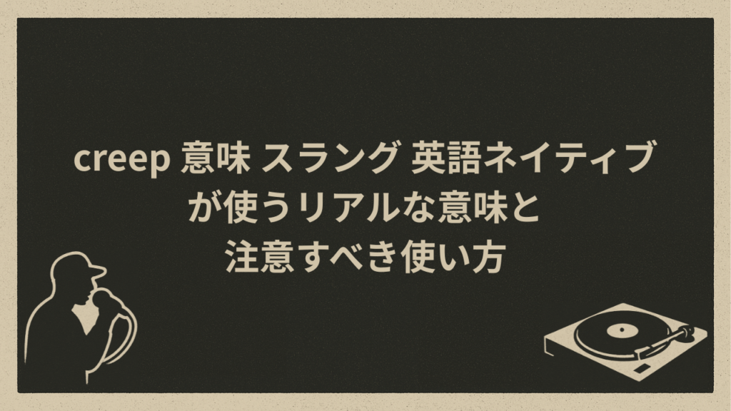 【「creep」の基本的な意味とは?(辞書的な定義)】 「creep 意味 スラング」で調べる人がまずつまずきやすいのが、辞書に載っている意味とスラングとしての意味がまったく別に見える点です。 「え、同じ単語なの?」と感じる人も多いですが、実はここを... -