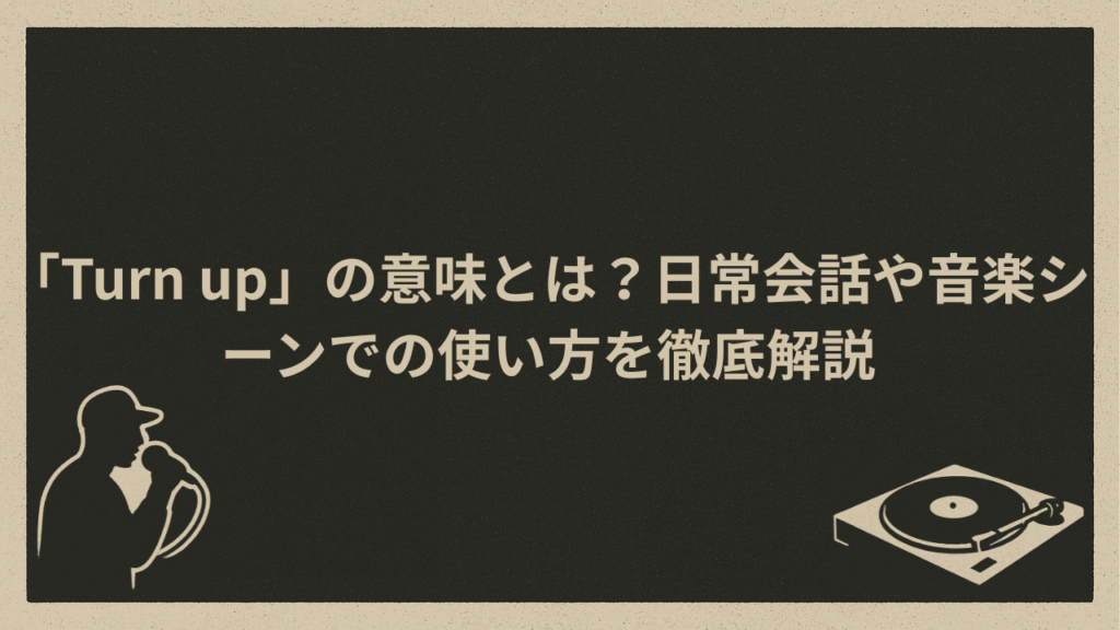 【「Turn up」の基本的な意味と使い方】 「turn up」の意味とは 「turn up」は、英語圏で非常にポピュラーなフレーズで、いくつかの意味があります。基本的には「現れる」や「出席する」という意味で使われますが、音楽やストリート文化では、さらに特別な... -