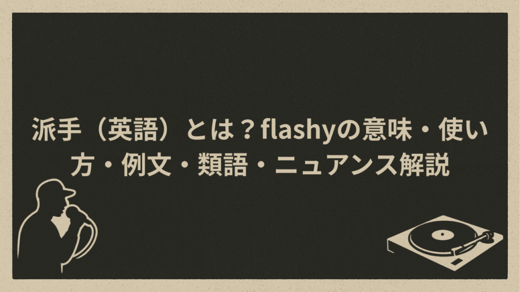 【派手 英語(flashy)の基本の意味とは?】 flashyの基本意味:「派手な、けばけばしい、目立つ」 「flashy(フラッシー)」という英単語は、日常会話や音楽の歌詞、SNSの投稿など幅広いシーンで登場する表現です。英辞郎では、flashyの意味について「(...