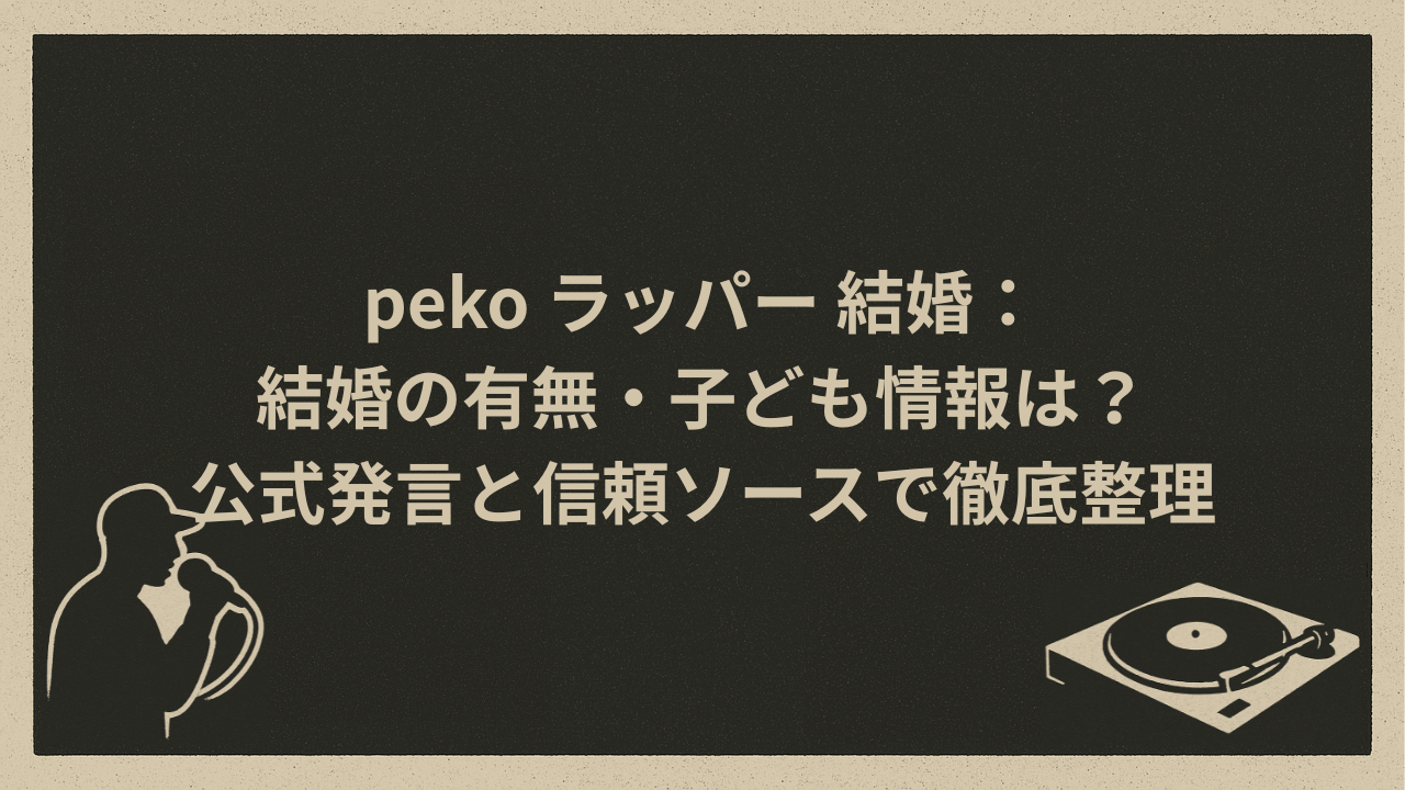 「peko ラッパー 結婚」は、プロフィール系の記事で“既婚で子どもがいる”と紹介されることが多いと言われています。具体的には、pekoが家族についてYouTubeやラジオで触れる場面がある、と要約されることが多いです。読者「ほんとに?」/筆者「一次発言の書き起こし全網羅は難しいものの、プロフィール解説でその旨が整理されています。」
