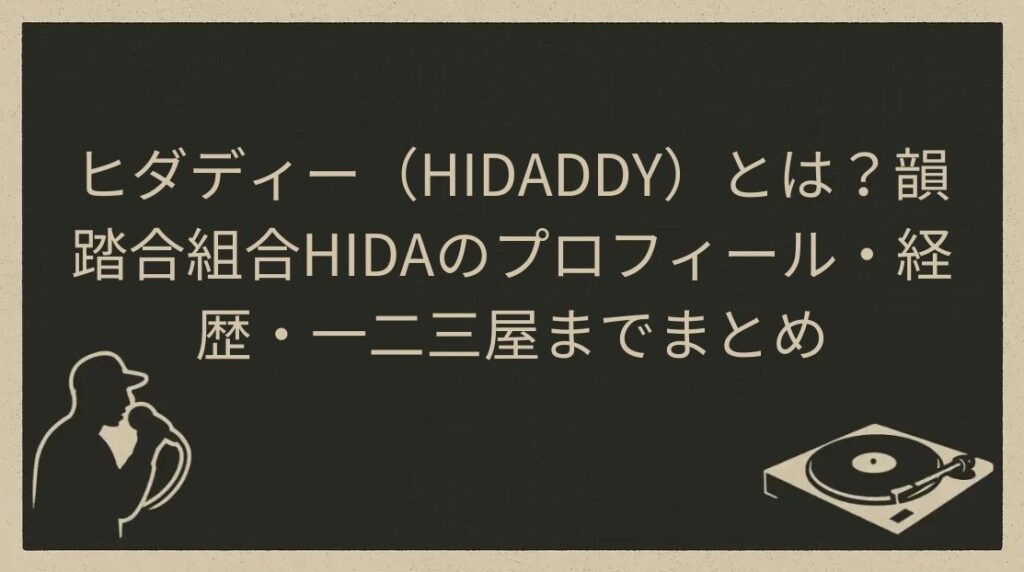 【ヒダディーとは何者?まず押さえる結論(30秒で分かる要約)】 「ヒダディーって誰?」と聞かれたら、ざっくり言うと大阪を拠点に活動する日本語ラップのMCで、韻踏合組合などに所属する人物だと言われています。別名表記が多いので、最初だけ整理してお... -