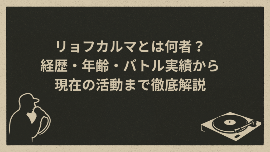【リョフカルマとは何者?基本プロフィール】 リョフカルマって、名前はよく聞くけど「結局どんな人?」と気になる方も多いですよね。結論から言うと、リョフカルマは日本のヒップホップシーンで活躍するラッパーで、特にMCバトルで高い評価を受けている人... -