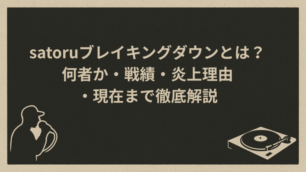 【satoruブレイキングダウンとは?何者なのか】 「satoruブレイキングダウン」と検索している人の多くは、「この人、結局なに者?」と感じているはずです。結論から言うと、satoruはラッパーとして活動していた人物で、格闘技イベント BreakingDown に出演... -