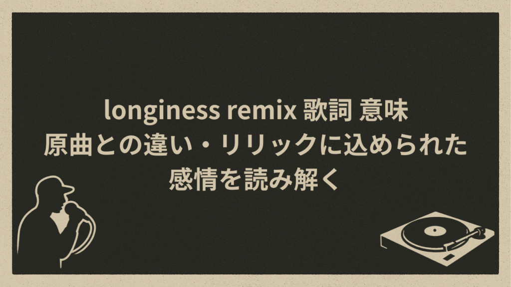 【longiness remixとは何か?|楽曲の背景と立ち位置】 「longiness remix」はどんな楽曲? 「longiness remix 歌詞 意味」と検索する人の多くが、まず気になるのは「そもそもどんな曲?」という部分かもしれません。 longiness remixは、原曲「longiness... -